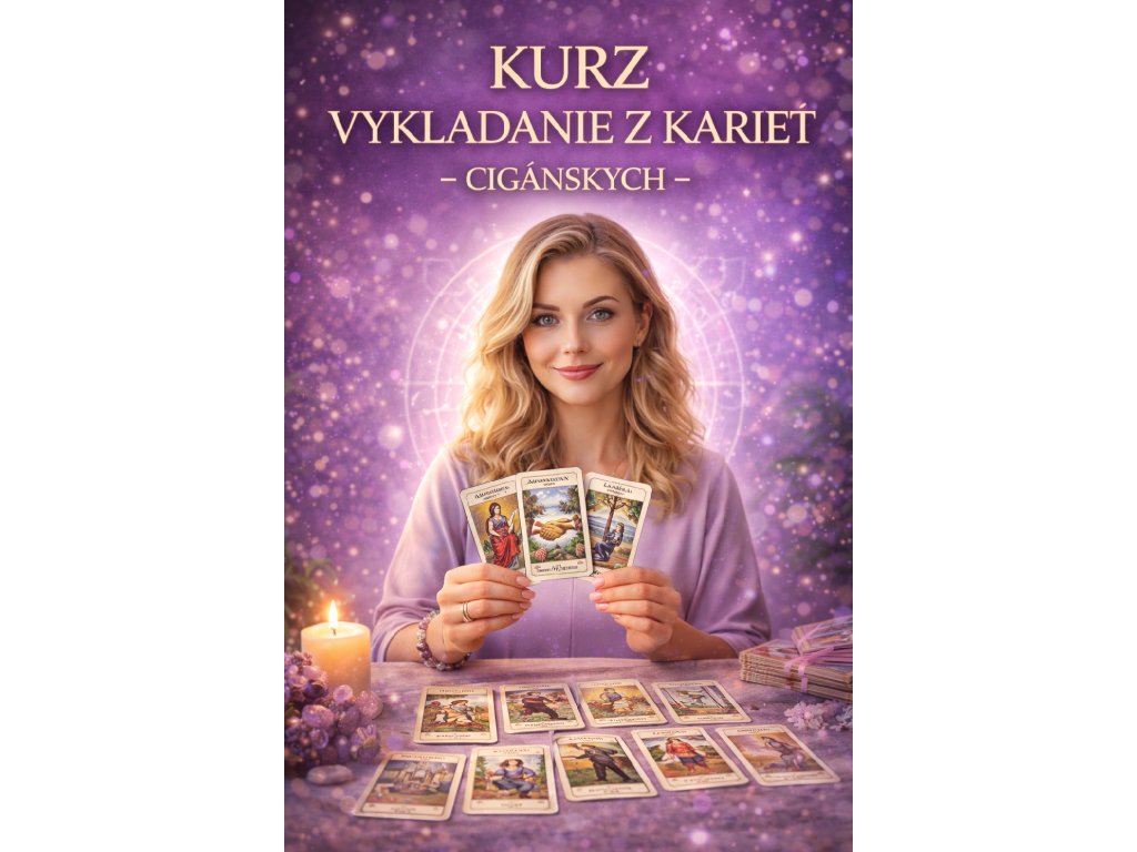 Kurz cigánskych kariet je rozdelený do prehľadných kapitol, ktoré vás prevedú celým procesom výkladu — od histórie a symboliky až po intuitívne čítanie a pokročilé rozklady.