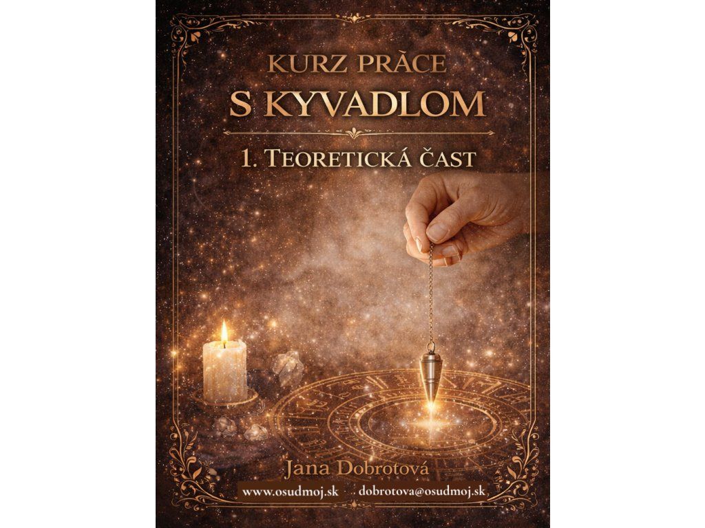 ✦ Teoretická časť — čo je kyvadlo, ako funguje, ako sa napojiť na podvedomie, ako formulovať otázky, ako sa pripraviť na prácu.